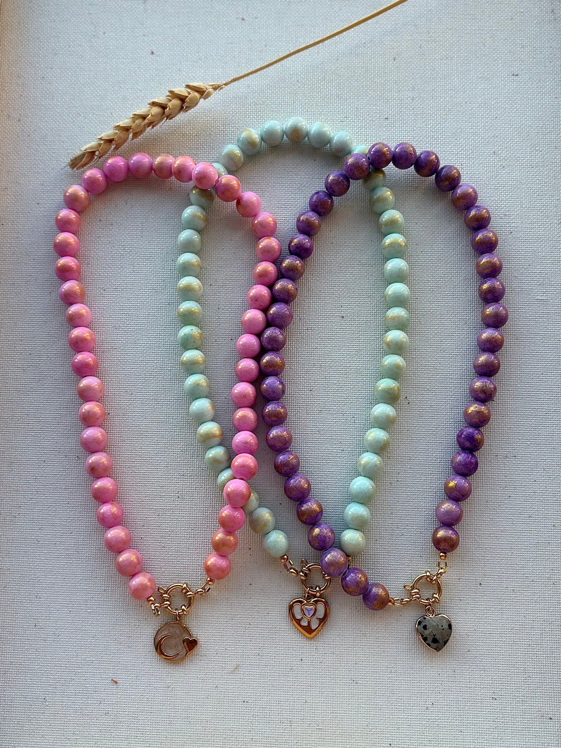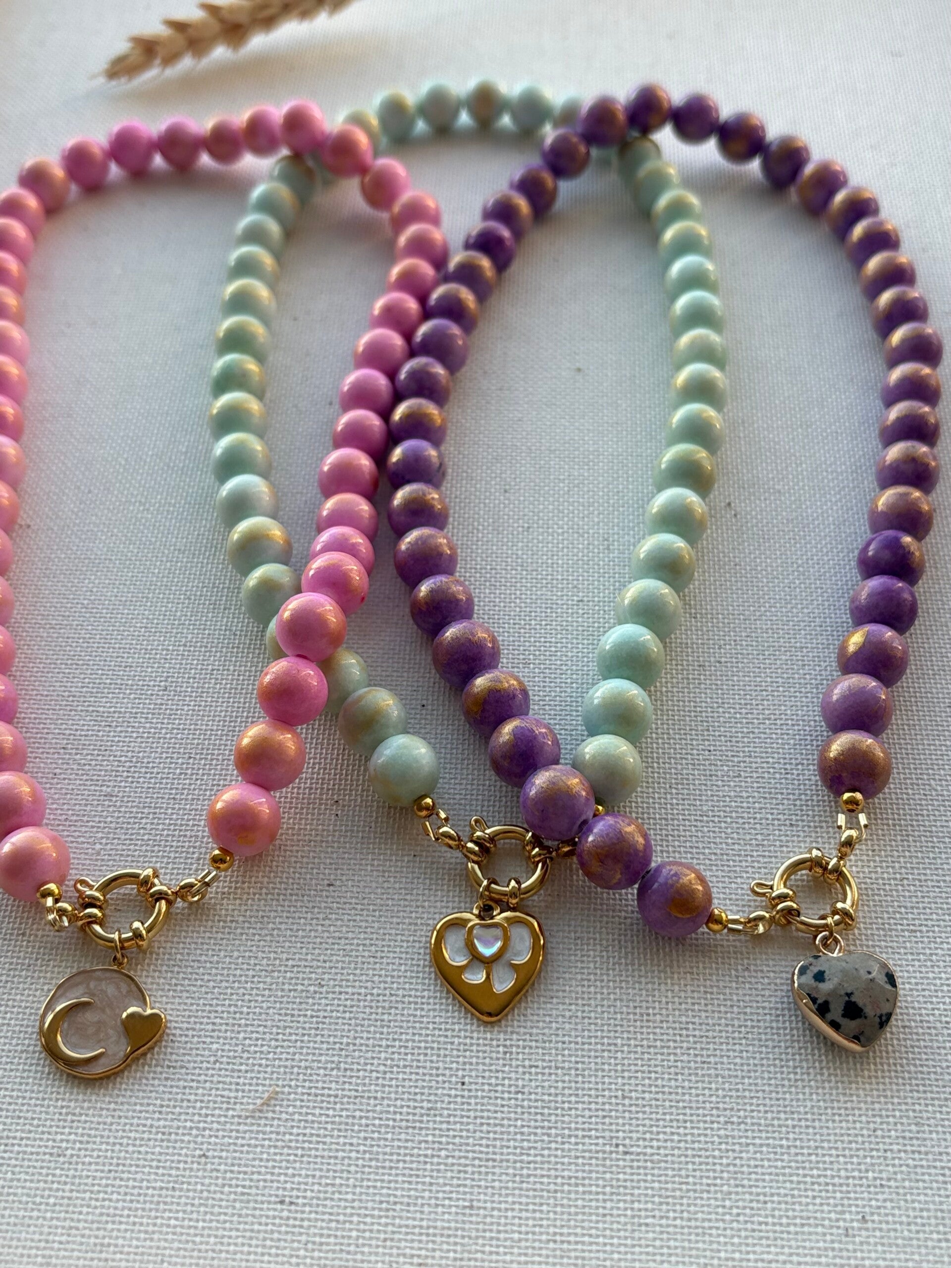 Ketting Elisa combineert zachte kleuren met een subtiele gouden afwerking. De ronde Perzisch jade kralen geven de ketting een tijdloze uitstraling, terwijl de bedel zorgt voor een speels accent. Met een lengte van ca. 44 cm sluit de ketting mooi aan rond de hals. Elisa is er enkel in een goudkleurige variant.
