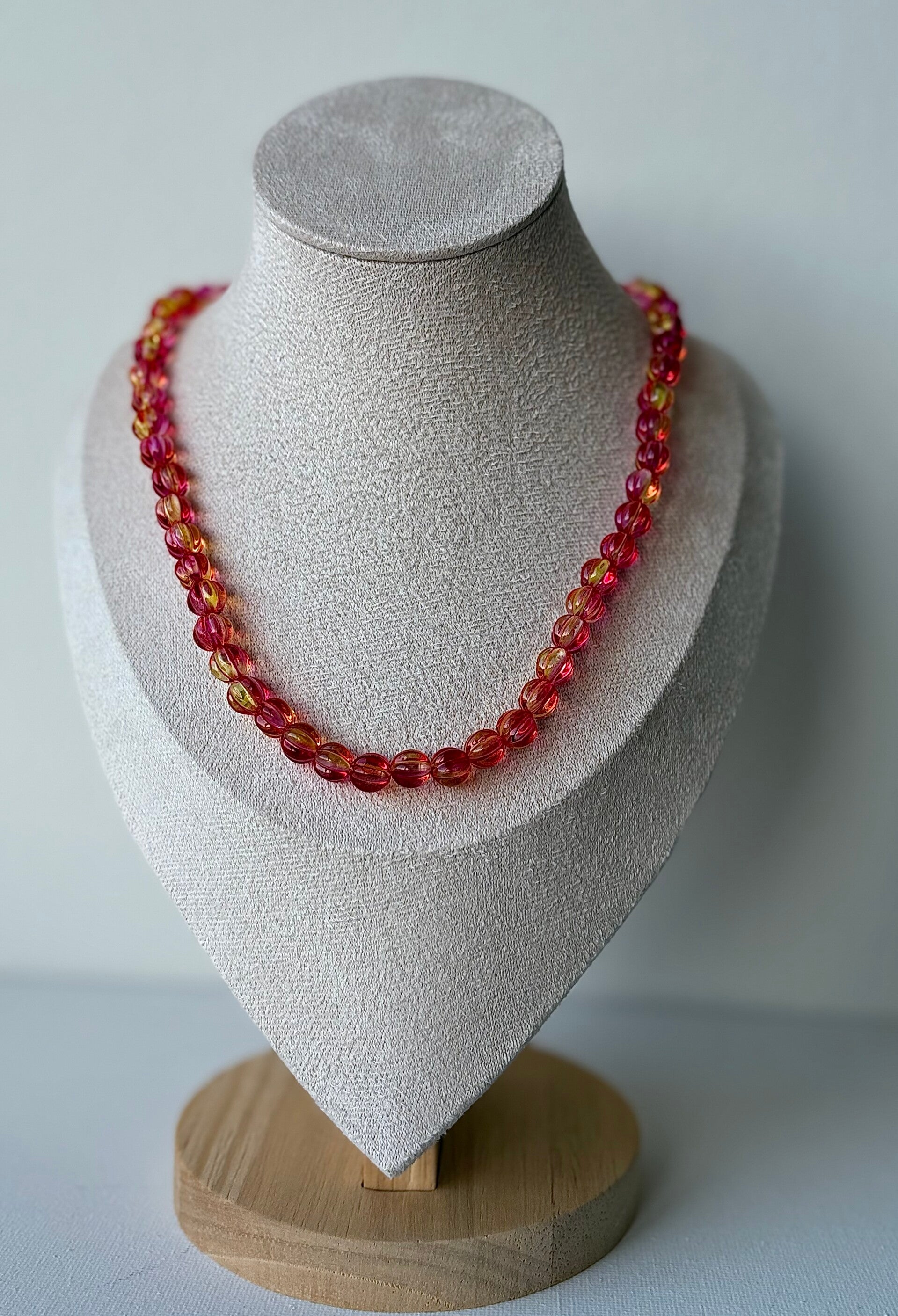 Isla Ketting met transparante acrylkralen in een warme roze tint. Afgewerkt met goudkleurige of zilverkleurige accenten. Tijdloos en makkelijk te combineren. Ook verkrijgbaar als ketting. Isla is ongeveer 34 cm exclusief verlengketting.